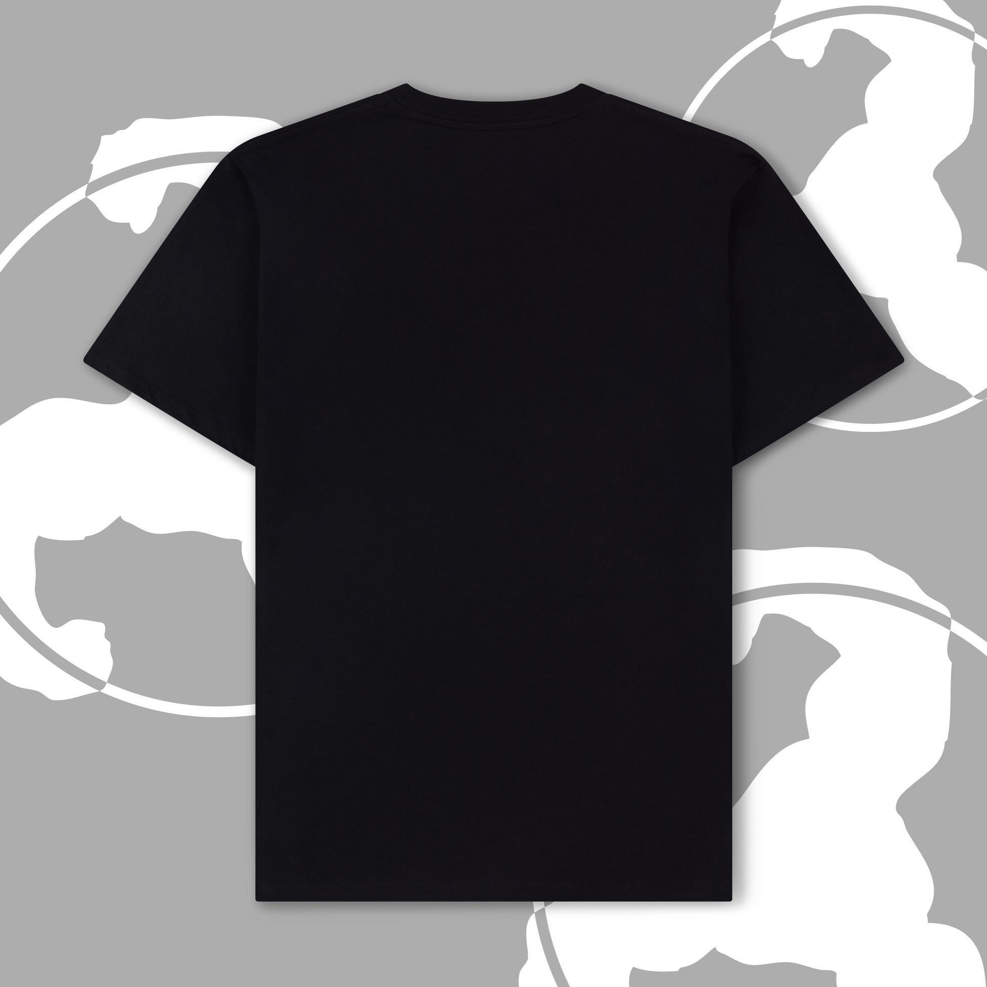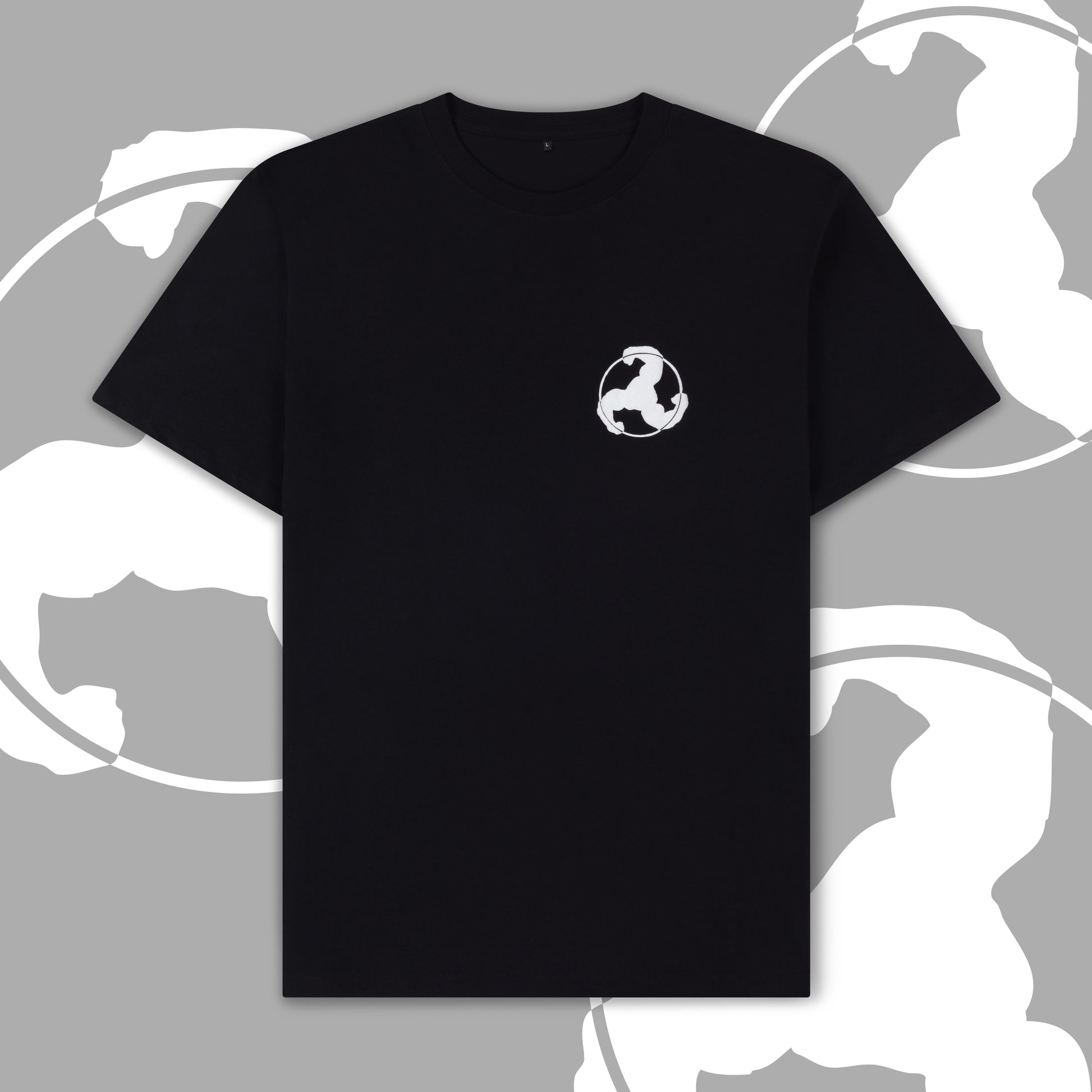 Black t-shirt with Bicep logo screen printed using puff ink.