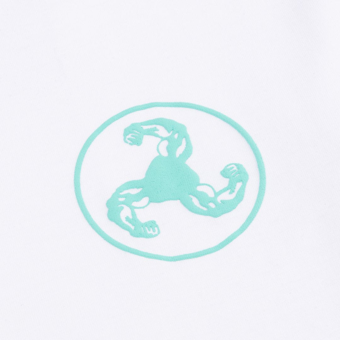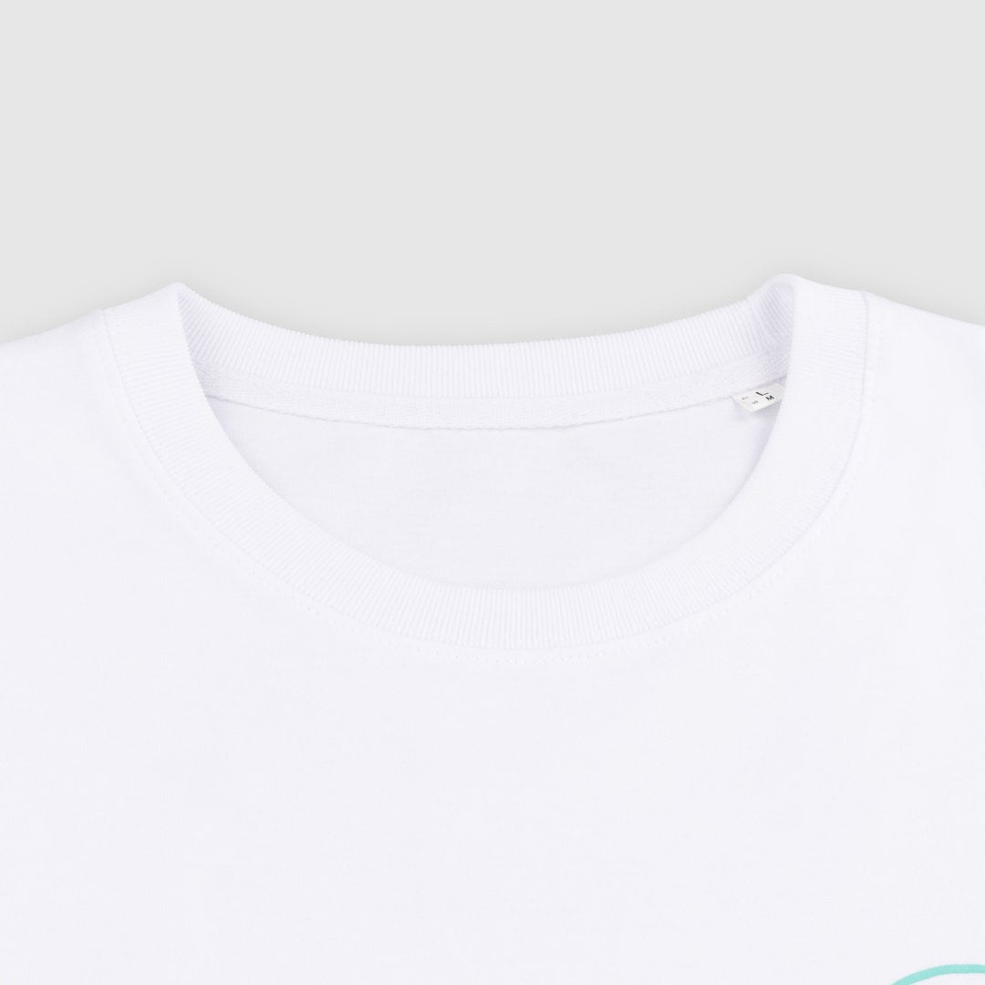 Bicep logo tee printed with a green logo on a white premium unisex tee. The puff screen printing technique used gives the Bicep logo a unique 3D look and feel.